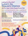 Caper Cutters - Starts Monday September 8TH, 2025 At 7:00PM - St. Monica Church, San Francisco, CA Martinez Swingers - Starts September 24th, 2025 - At 7:30 PM - Pacheco Community Center Pacheco, CA Vaca Valley Ramberlers - Starts Friday Oct. 3RD, 2025 at 7PM - VFW Hall Vacaville, CA Swinging 21ers New Dancer Class - Starts January 20th, 2026 at 7:30PM - Fremont CA
