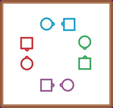 Left arm turn the partner, then go to the corner for a right arm turn and return to the partner.